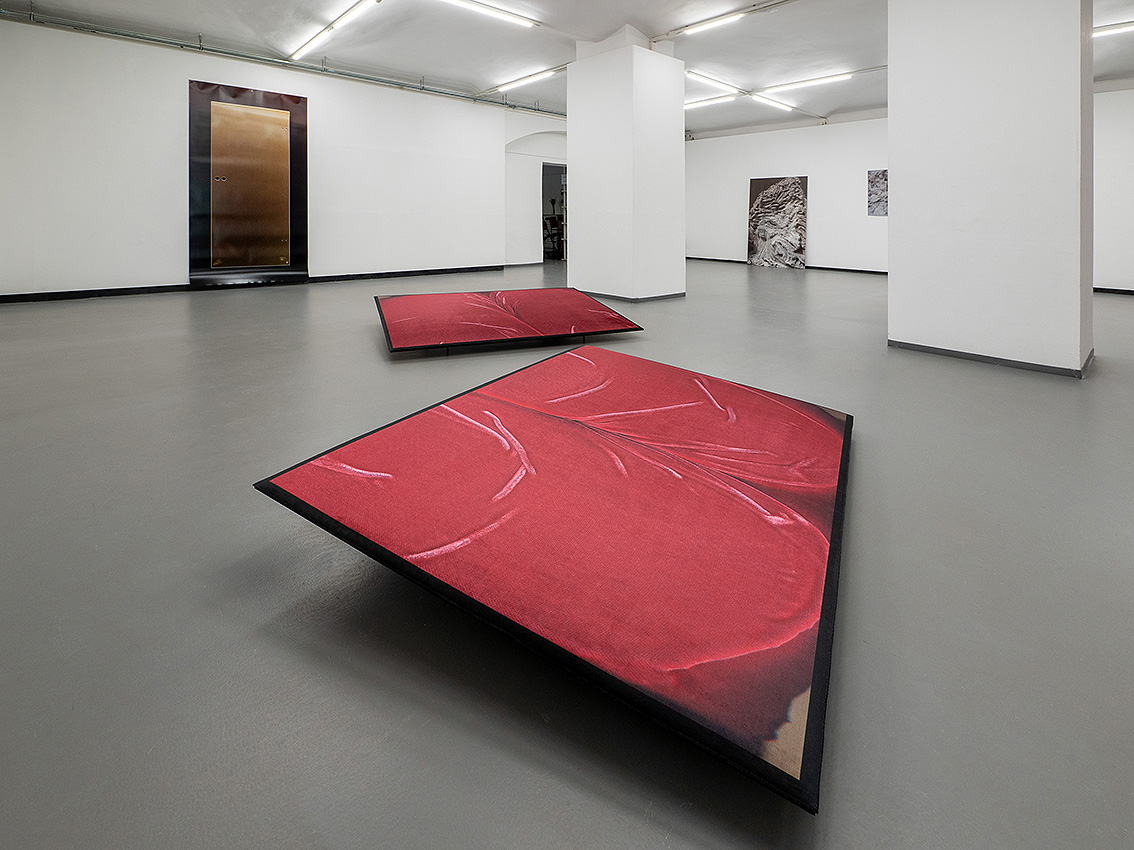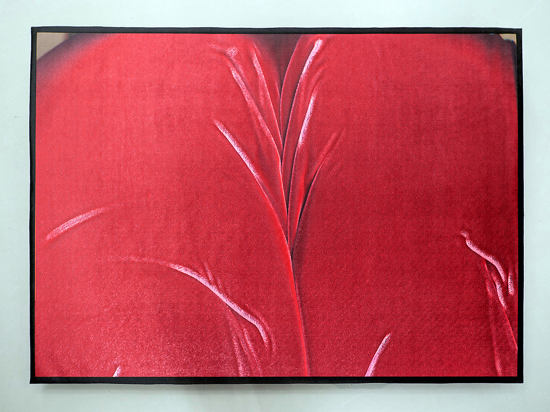 With her large format series of unique textile prints on velvet, Headquarters, Judith Huemer investigates the relationship between body, fabric and space. Like diary entries, she sat daily on the glass plate of the scanner wearing every-day clothes and made a scan. This unusual perspective created abstract, symbolic images of folds in the textiles, tiny traces of the human body. The randomness as to how the fabric sits on the scanner and the position of the protagonist determines the temporary folds. Each image is unique and unpredictable. The work questions the regimented and automated social patterns of behaviour such as perfection, order, control, routine as well as aesthetic ideals which is broken by Huemer with the beauty of imperfection and the ephemeral. “The Headquarters series is a plea for giving space to the uncontrolled, incidental and unnoticed, in short, the marginalia that constitute being human. The images unfold the symbolic content of everyday situation with humour, revealing what is invisible but nevertheless registered.” (Ruth Horak, 2024)
